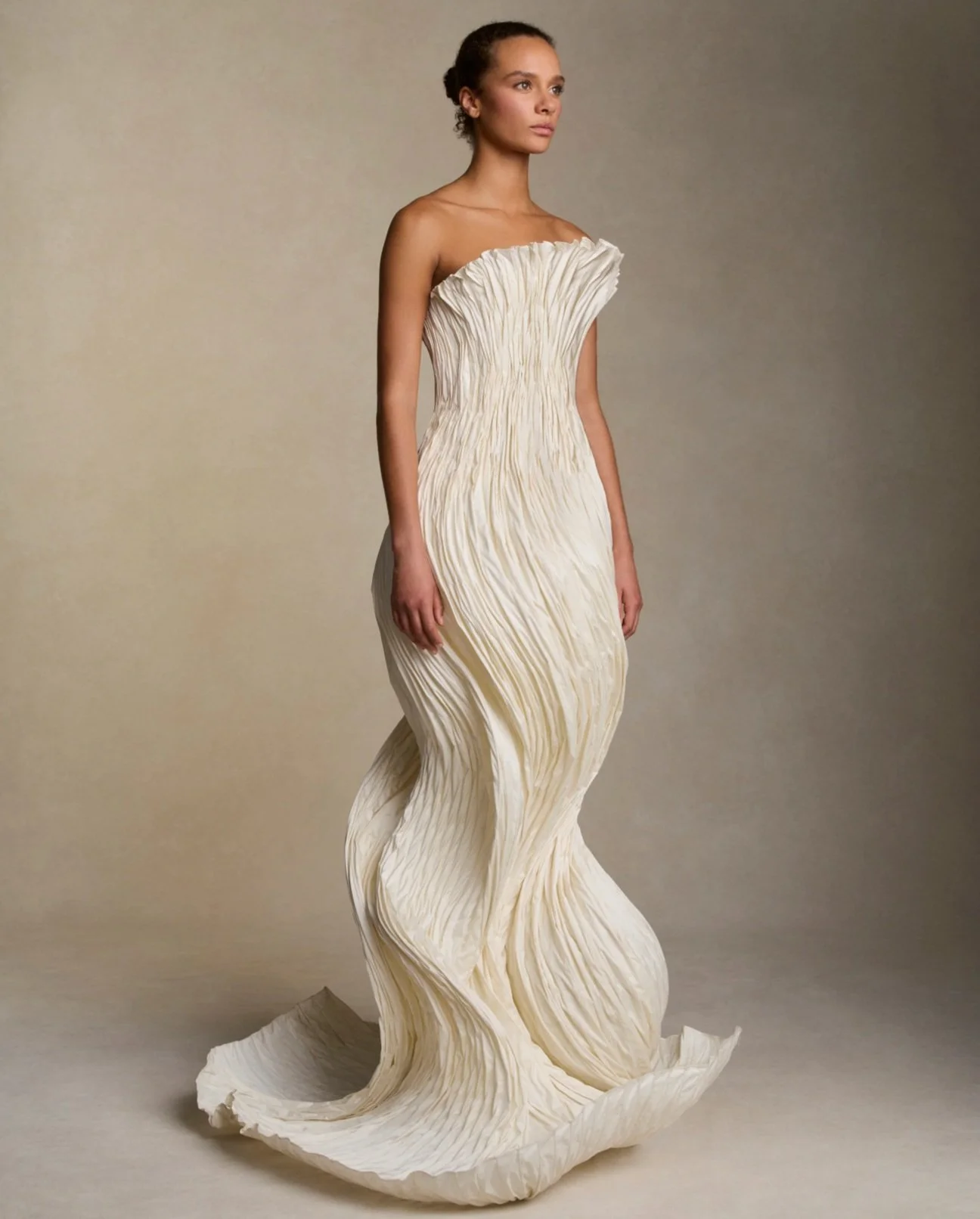 Australian designer Toni Maticevski brings his signature sculptural artistry to bridal fashion with a collection that defies convention. Maticevski Bridal features gowns characterised by architectural draping, innovative tailoring, and rich fabrics, creating silhouettes that are both dramatic and graceful. For brides seeking a bold and unforgettable bridal statement, Maticevski offers a compelling fusion of high fashion and bridal romance.